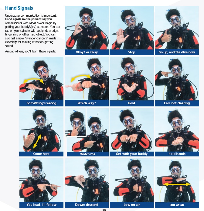 Lors de chaque briefing avant plongée, ces signaux sont expliqués et révisés afin que tout le monde plonge en confiance.